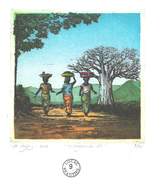 en ieder kader toonde een in lokale kledij gestoken dame in een bosrijke