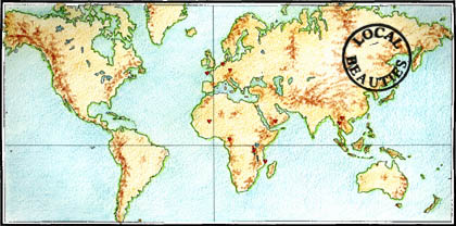 van de vier kaders stond in een wit blokje: Local Beauties.