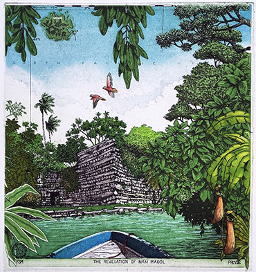 Mount Talau, Vava'u, Tonga 2020 kleurets / color etching 53x50 cm Info/bestel |